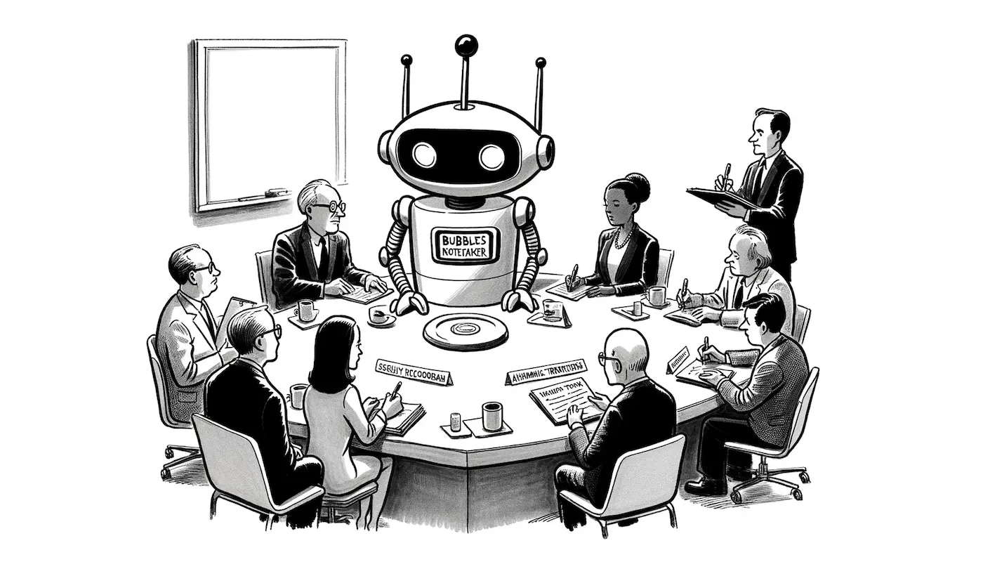 Smooth communication is mission-critical, yet meetings can drag with disengaged participants secretly scrolling social media under the table. Let's hack this issue! Enter Bubbles Notetaker—this digital assistant absorbs every word exchanged in meetings, capturing awkward silences and all. Now we can actively participate without worrying about taking notes. We should also incorporate personal icebreaker questions or off-topic discussions. Science confirms that teams who connect socially communicate with significantly higher quality at work. This year, let's foster an environment where all perspectives feel not just heard—but actively celebrated.