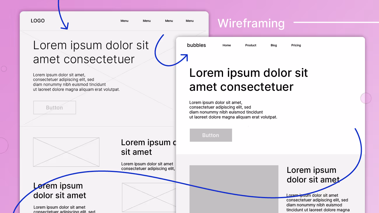 The wireframe acts as a foundation on which designers can frame out the site’s visual elements, including page layouts and sections, as well as elements like headers and footers.