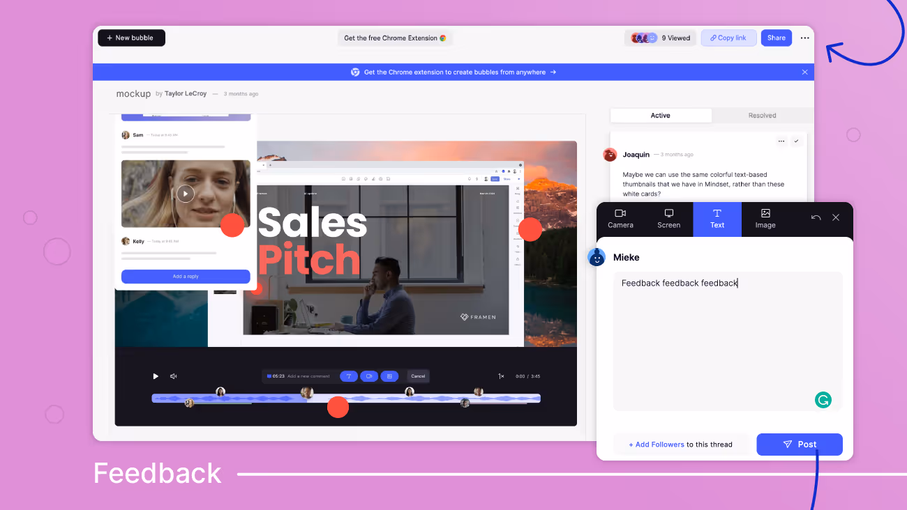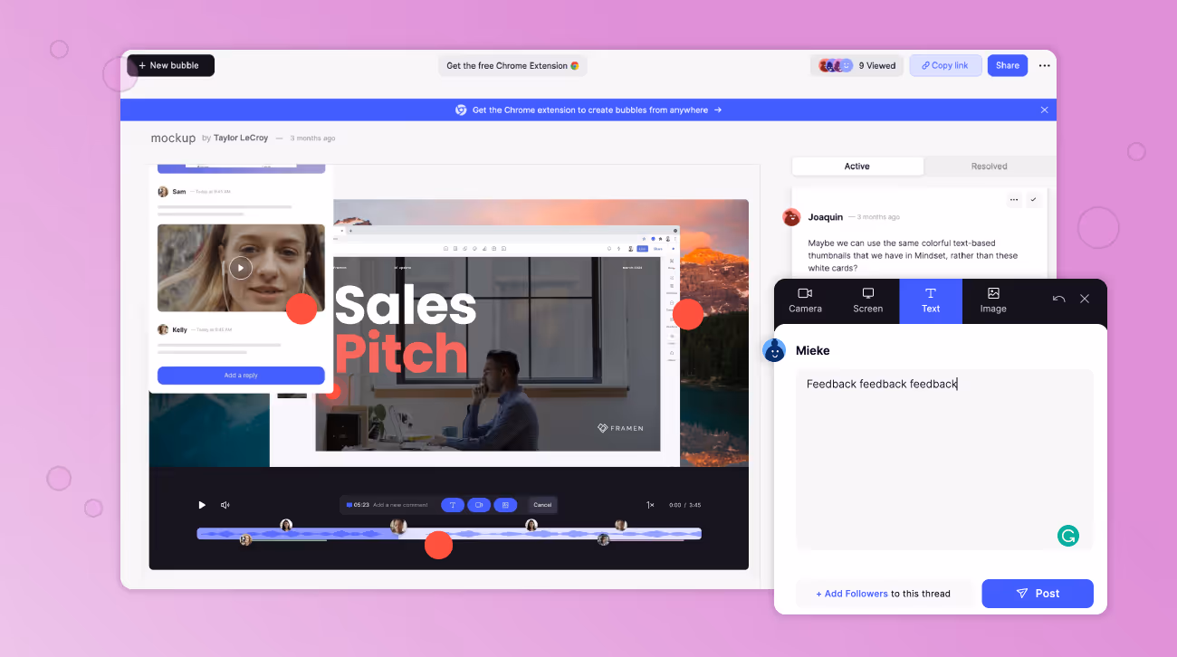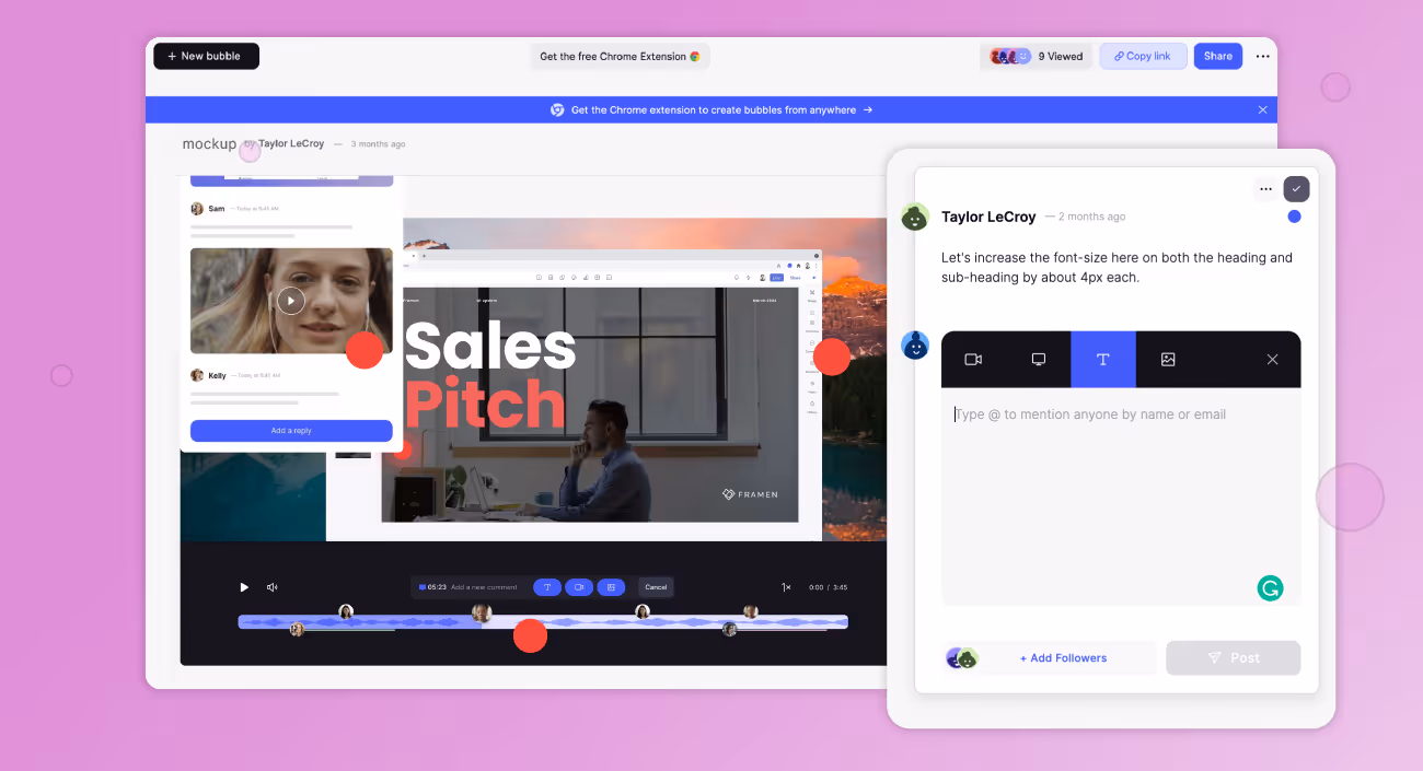Bubbles lets you give in-context feedback in whatever way helps you get your point across clearly.