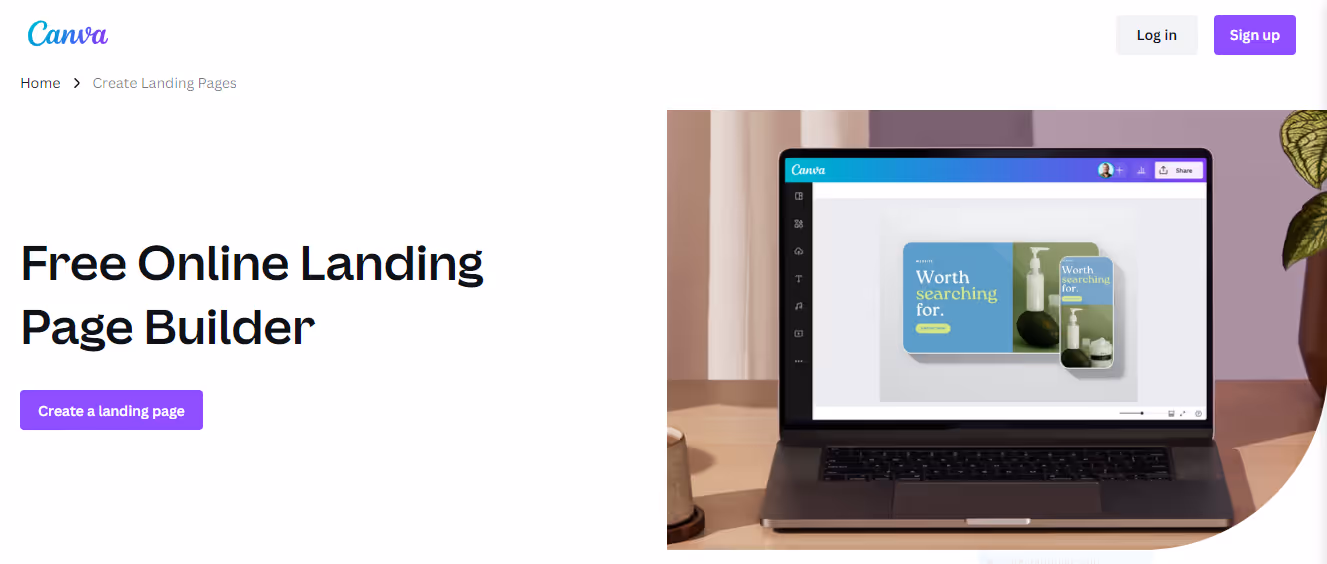 Canva’s landing page uses educational content as a marketing tool. By providing valuable tutorials, Canva engages users in a learning experience and encourages them to take advantage of the platform for their design needs.The layout of the landing page is clean with large template preview images, brief descriptions, and clear call-to-action (CTA) buttons.