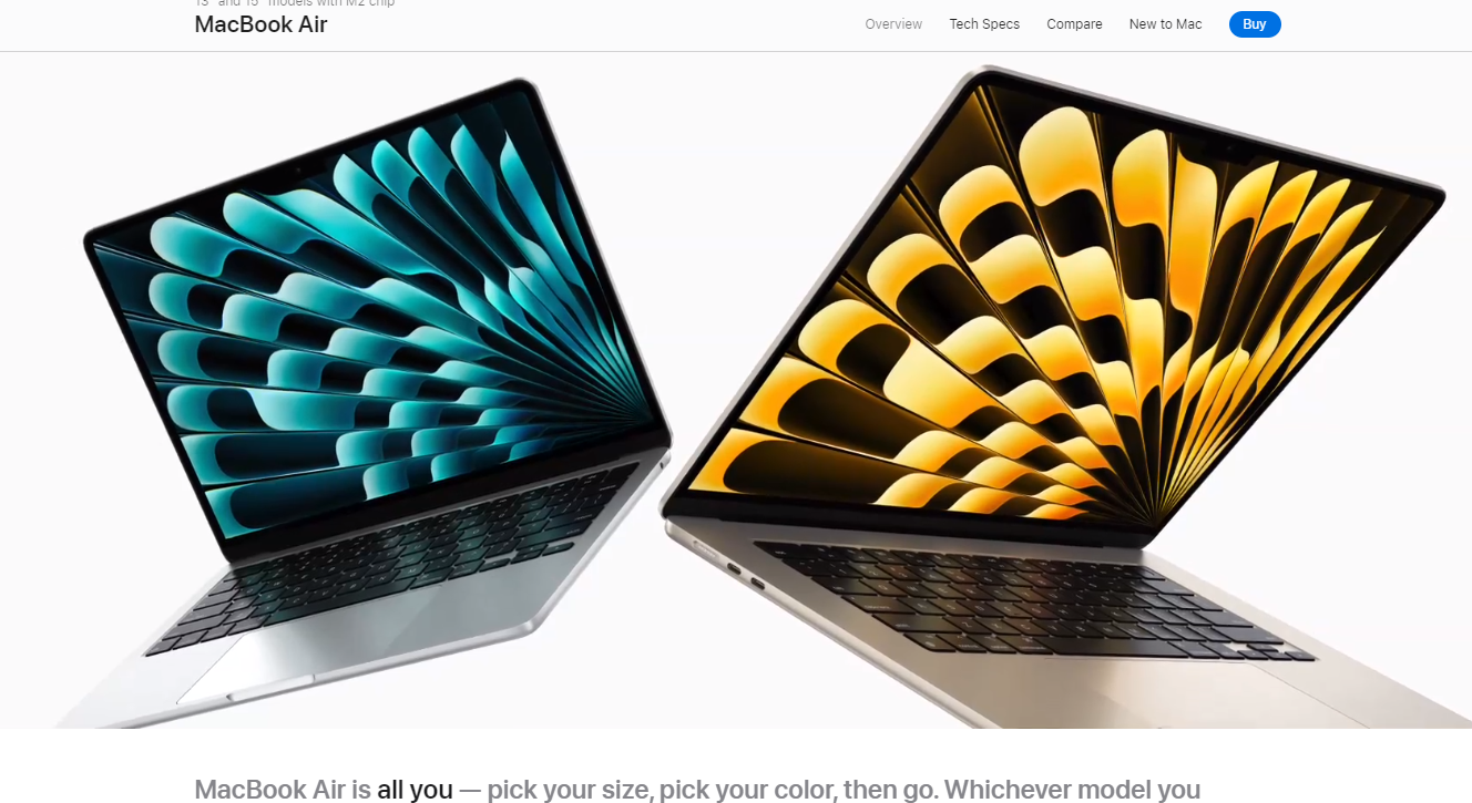 La page du MacBook Air d’Apple associe des images haute résolution et des animations déclenchées au défilement pour offrir un récit produit immersif.